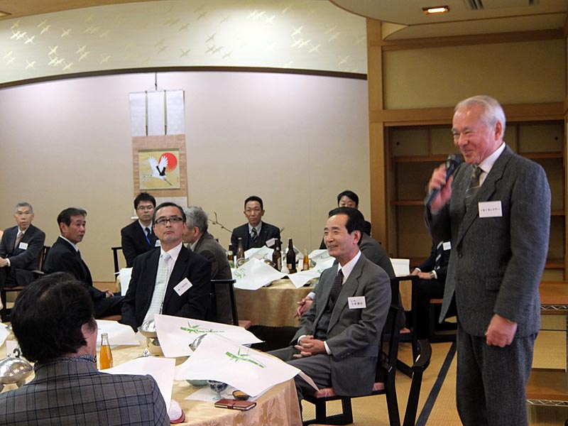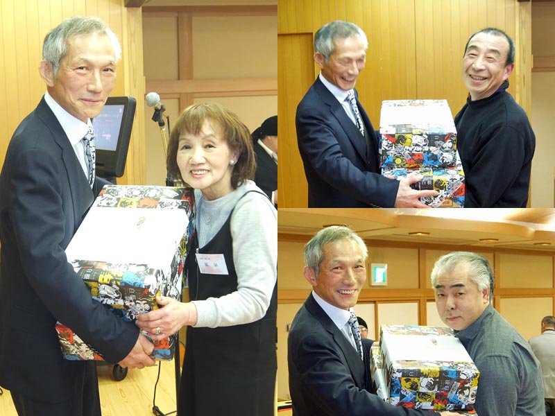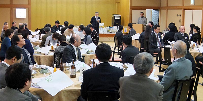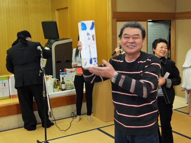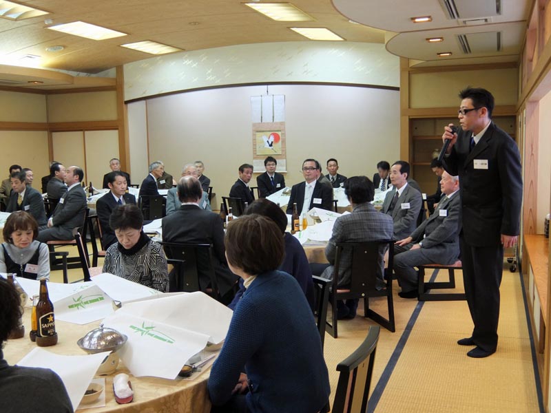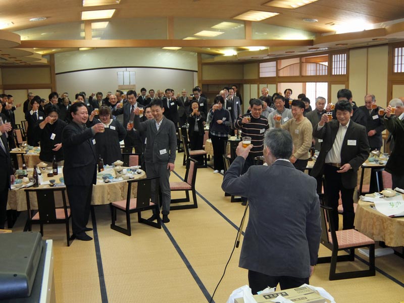 23日、加賀苑において三条飲食店組合の新年会が開催され、組合員や取引業者を含め69名が参加した。 以前は、組合員の大多数が参加していた新年会も、最近では若い人たちの飲酒離れも反映してか、参加者の数が減少している。 そんな中でも、今年の参加者は若い人たちも多く、組合も世代交代の波が読み取れるようになってきた。 岩城組合長は、年頭の挨拶で昨年末に発生した糸魚川の大火災に触れ、 火災のは火元が我々の同業者であることから、再度、火の取り扱いに注意を促した。 その後、参加業者の紹介があり、金子前組合長の乾杯の音頭で宴会が開始され、 アトラクションの抽選会では、数多く用意された景品を次々にゲット、喜びを爆発させた。 また、カラオケ大会も開かれ、玄人跣の喉を披露した参加者は両手に抱えきれないほどの景品を獲得、大いに盛り上がった。 酔いも回り、全員の気持ちが大きくなった頃合を見て(笑)『糸魚川大火災支援募金』のお願いに回ると 同じ県内、同業が火元ということもあり、参加者が快く要請に応じて、入るわ入るわで、音のしないお金もどっさり! この日協力いただいた募金は、現在、組合で行っている募金活動で集まった金額に併せて、被災地に贈られる。 |
