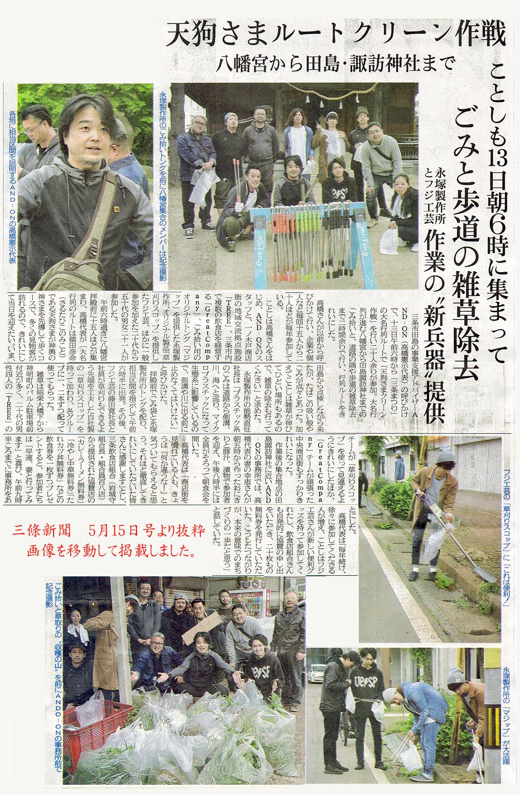 15日の三条新聞に三条飲食店組合のサポート活動が記事に取り上げられた。