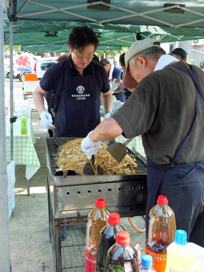 この時点で既に気温は35℃近くとなり 焼きそばを焼く担当会員は汗だくで奮闘