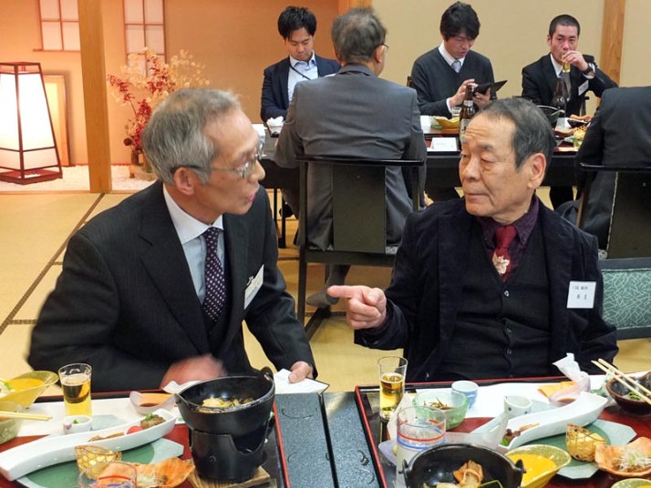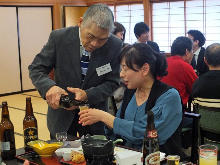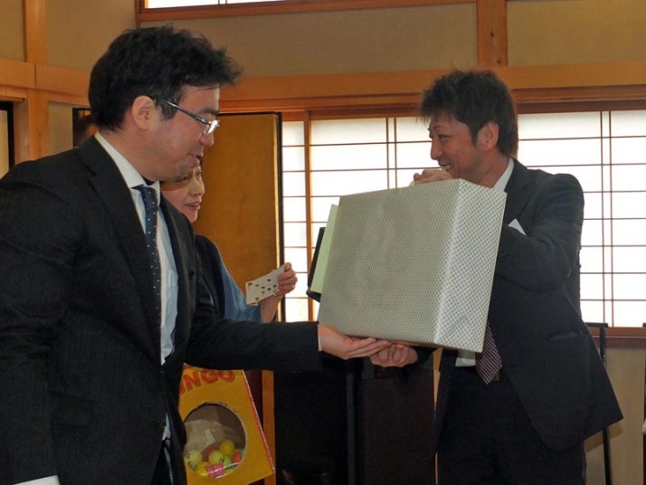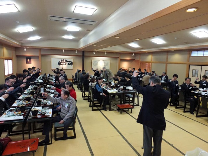 | 三条飲食店組合令和2年の新年会が1/21(火)西本成寺の料亭・一富で開催され 今年は火曜日の開催とあって少々参加者が少なく 組合員26名取引業者26名の52名が参加した。 岩城守組合長は挨拶で 『昨年は平成から令和に元号が変わり 消費税の引き上げや軽減税率の導入など 変化の多い年でしたが 組合で勉強会などを行い何とか乗り越えることが出来ました。 しかし 増税の影響もあってか 世の中の景気が一向に上向きに変化せず 営業にも支障をきたしています。』 と訴え 納入業者にはいいアイデアやバックアップを求めた。 そして『今年の様に 新年会の日に路肩に雪が何も無い年は初めてで また今年も�昨年の様な災害が起きてくれないように願っています。 昨年は台風19号の被災地支援に協力いただき僅かではあるものの被災地に寄付することが出来ました。』 と 出席した組合員に協力のお礼を述べ 『最近は組合員数の減少が顕著ではあるものの 組合員力を合わせながらこれからも頑張って行きましょう。』と結んだ。 その後 参加業者の挨拶があり 『これからも皆様の力になれる様一生懸命にサポートさせていただきます。』 という声が多い中 ある出席業者が 『私も皆様も そう若くない年代に入りました。今年はあまり仕事に一生懸命にならず 健康を考え そこそこに仕事に取り組みましょう。』 と挨拶する業者の言葉に出席者は妙に納得させられた。 その後 今井重行(今泉)元組合長の音頭で宴会に入った。 宴会の途中では ビンゴゲームや抽選会が開かれ終始和やかな雰囲気で宴会は盛り上がりを見せていた。 14:30から15:00までの楽しい宴会もあっという間に過ぎ 金子弘三(天開)前組合長の『景気が一向に 上向きの気配を見せない中ですが組合員一同 “ワン・チーム” となって力を合わせて前に進みましょう。』 と 力強く訴え 万歳三唱で今年の新年会を締めくくった。 |