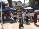 この日も朝から気温がぐんぐんと上がる中 それぞれの加盟組合の担当会員が集まり 会場の設定や11時から始まる「ミニ縁日」で無料で振る舞う焼きそば作り(400食分)やかき氷(300杯分) また 子供達が楽しみにしているスマートボール掬いや水ヨーヨー釣りなどの用意に取り掛かった。この行事は 日頃使用する『箸』に感謝する目的で8/4のロゴに合せ東京の山王日枝神社において 割りばし製造組合が日頃使用した使い古した箸や折れた箸に感謝の気持ちを込めて始めたのが発端と言われている。 食品を提供することを生業とする三条市内の飲食関連の各団体も44年前にこの活動に賛同し供養祭を開始 毎年恒例の大切な そして お楽しみの行事となっている。 44年の間 20年前に三条を襲った13水害と4年前に世界中に猛威を振るったコロナ感染症の拡大で飲食関連業界や全ての社会活動が中止となった年を除き毎年八幡宮で開催して来た。 食協では 学童や一般に向けた手洗いの講習会を随時行っており この日も手洗いを体験した親子にお楽しみ袋も用意された。 焼きそばづくりはミニ縁日が始まる11時に合せるため8:30頃から取り掛かった。 藤崎宮司による神事は10:30から始まり 会式にあたり食協三条支部 関能広支部長が『日本人は食事をいただくとき手を合せ”いただきます。”と言って食事を始めます。これは食事としていただく万物に感謝や敬意の心を込めた合掌で大切なことです。』と参列者に挨拶し神事が始まった。 藤崎宮司による御幣でのお清めを受ける関係者。 関支部長の榊奉納に合せ食協組合員全員で柏手を打ち神事が終了し 境内に設えた結界内の焼納台に関係者や一般の人達が持ち寄った使用済みの箸をくべて合掌し箸供養祭が終了した。 ミニ縁日は この日を楽しみにしていた親子連れで賑わいを見せ 無料で提供する焼きそばやかき氷もあっという間に無くなる盛況ぶりを見せていた。 関連記事 ケンオードットコム ![]() 新潟日報 8/5記事 |