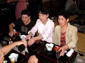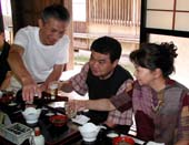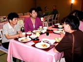 到着後、一千着の中から好きな浴衣が選べます。まるで牡丹かシャクヤクか。 我が女性軍の艶姿をとくとご覧あれ。 |