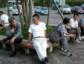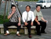 偶然遭った同僚と。 右が我がDV若穂囲さん。 |