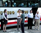 | 三条飲食店組合・今井組合長の挨拶で旅行が始まります。 |