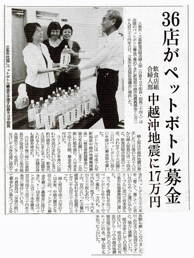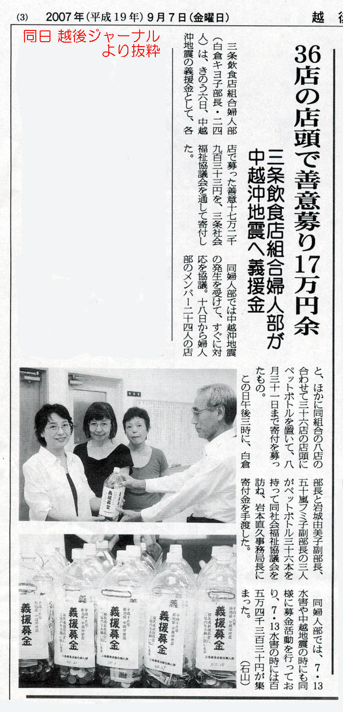 - に上る募金を共同募金会を通じ中越沖地震被災地に届けました。
