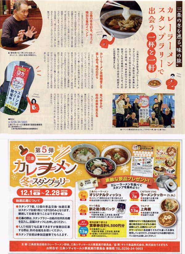 』に 三条の冬を巡る”味の旅”と題したコーナーで 三条カレーラーメン部会が取り組む《冬のカレーラーメンスタンプラリー第5弾》の内容が紹介されました。